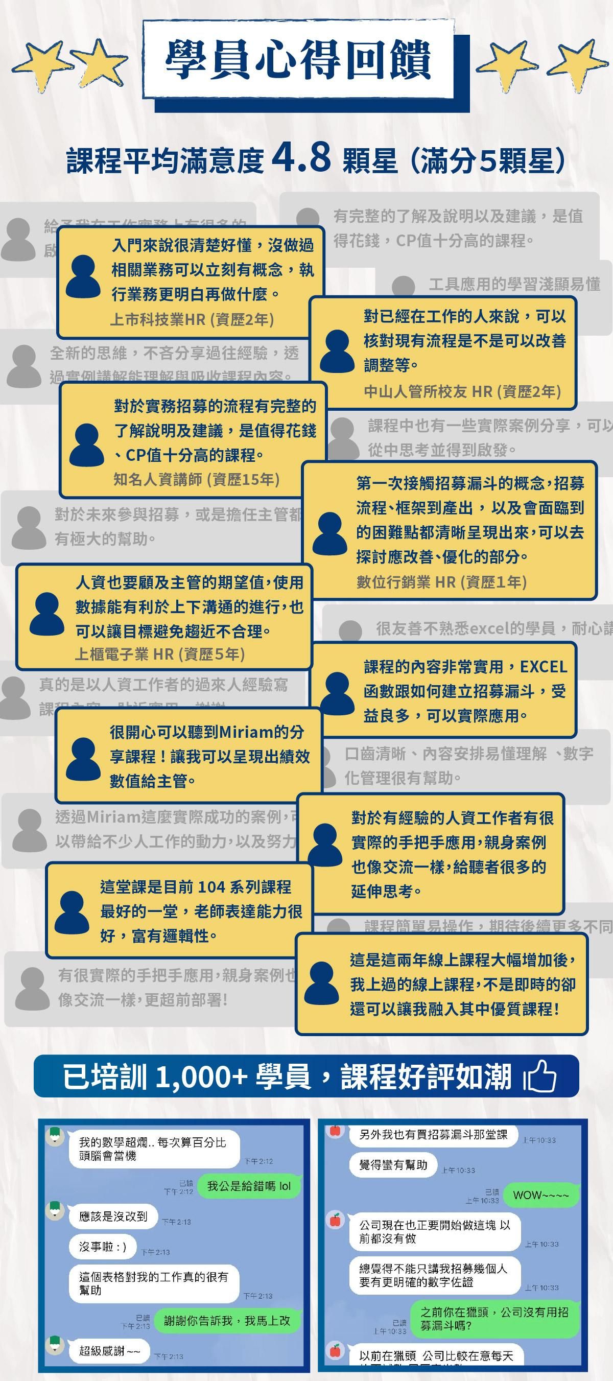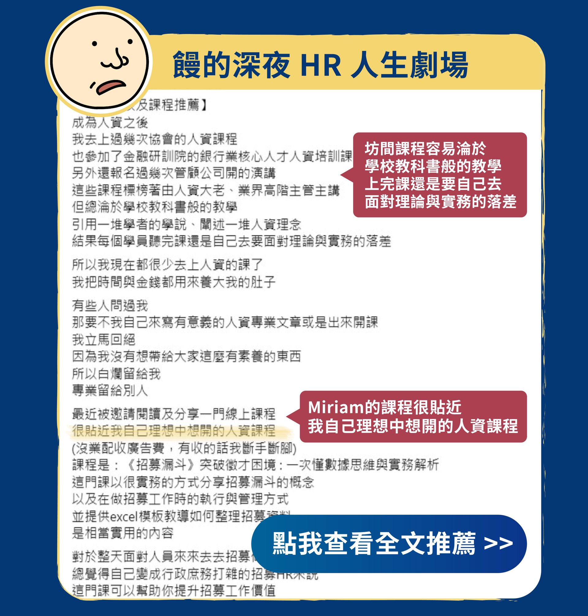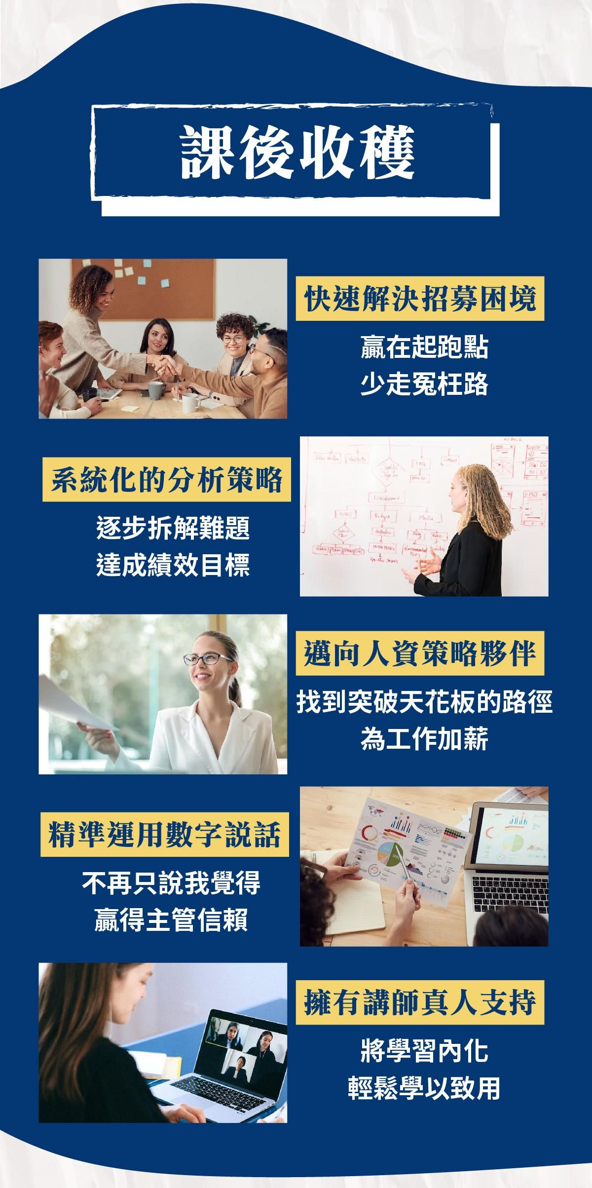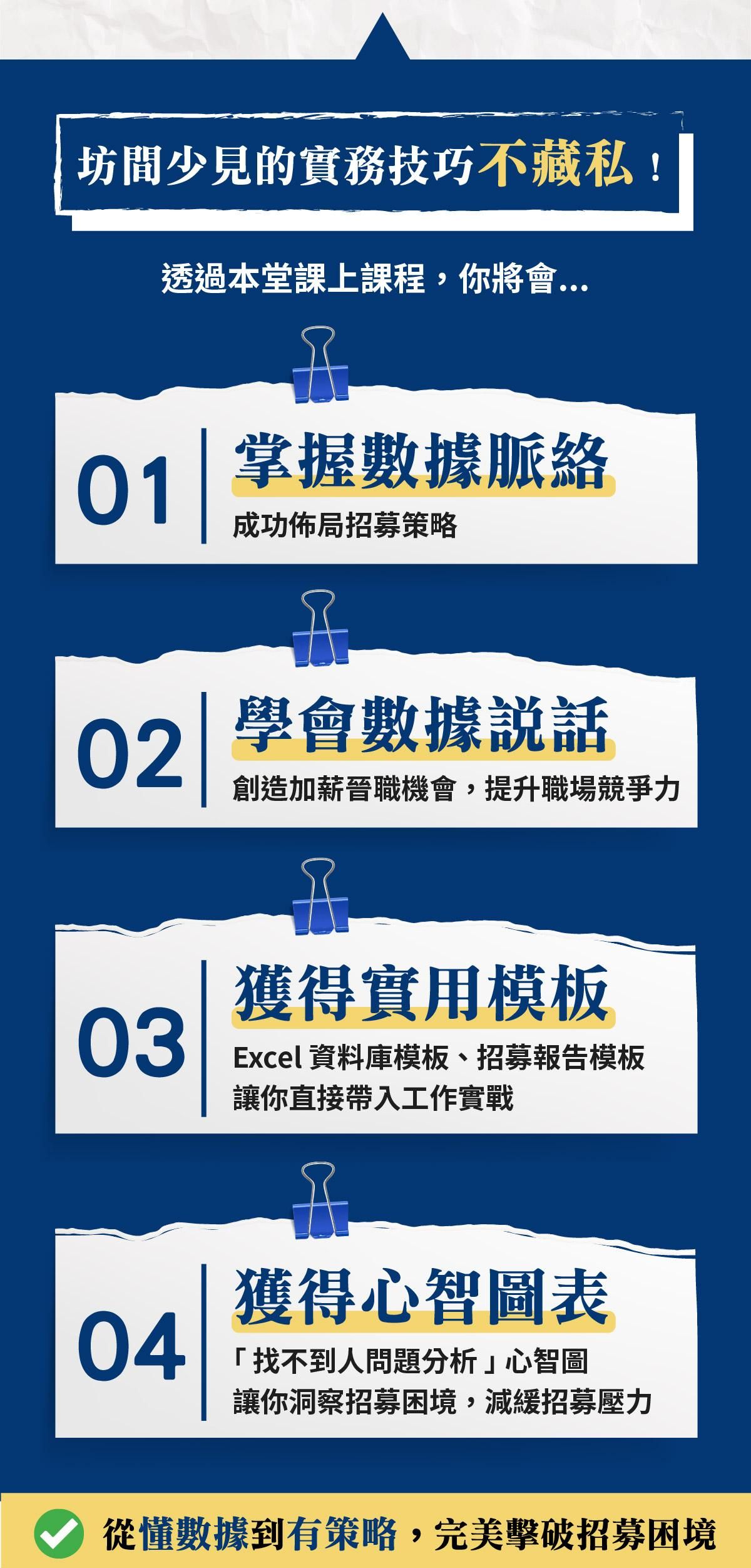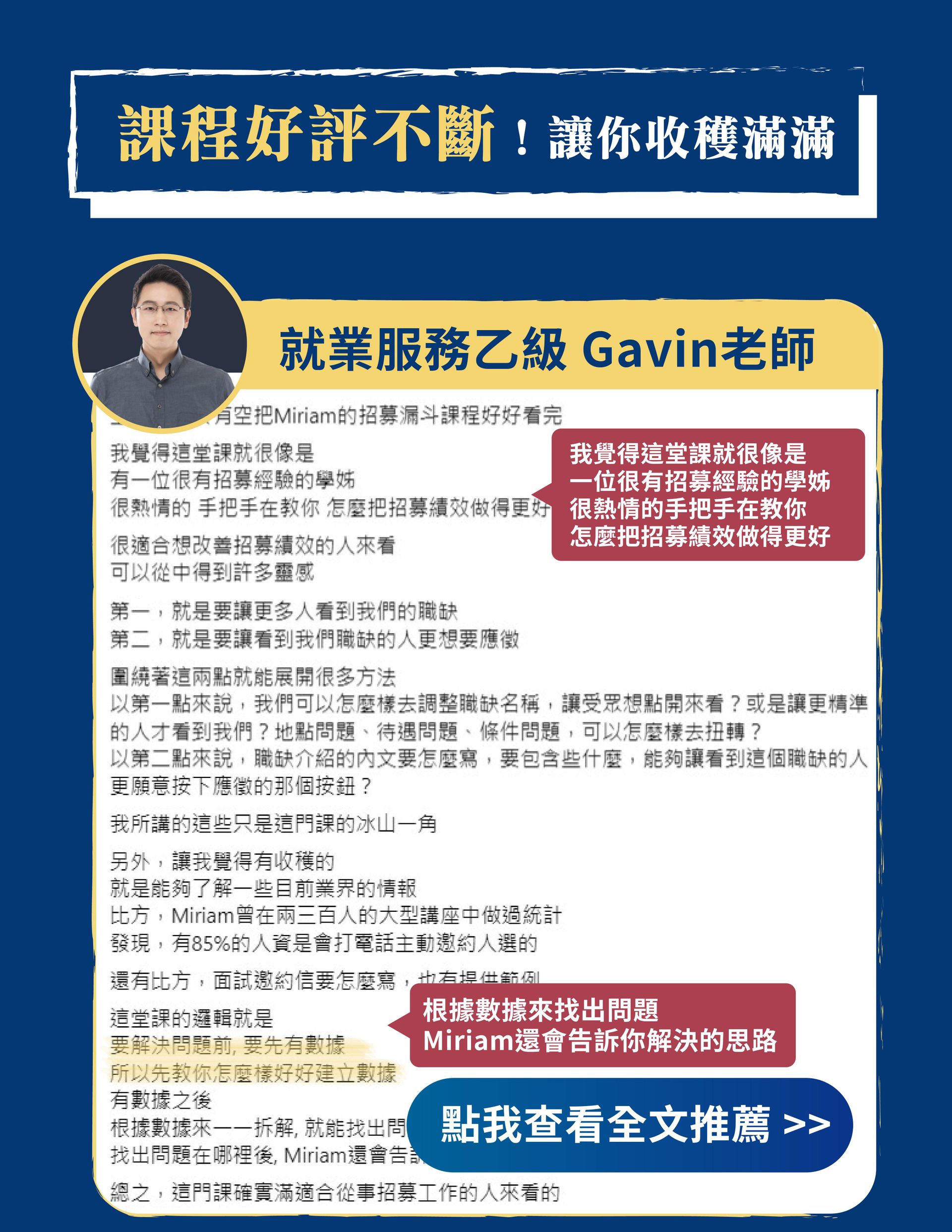 - 課程中也分享該如何解讀數據,跳脫招募本位,從組織及就業市場角度分析