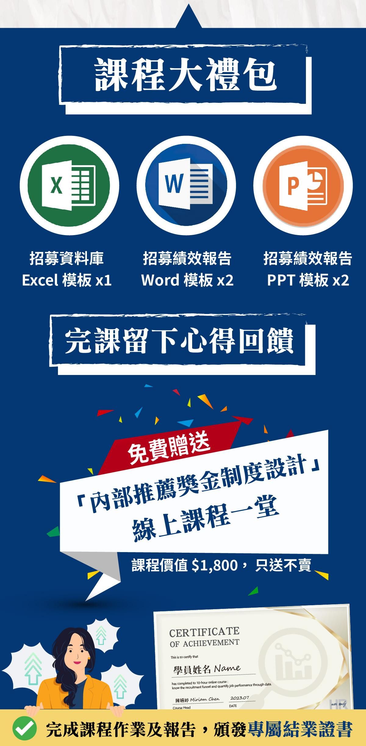 - 在學院給予回饋,即贈送「內部推薦獎金制度設計」線上課程