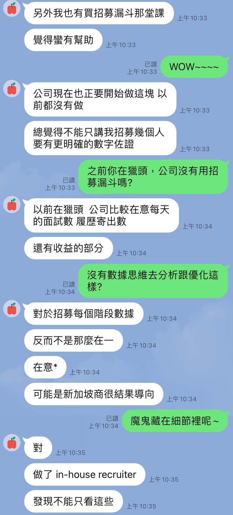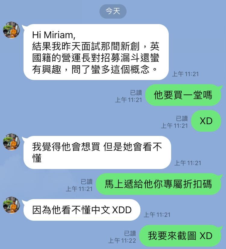 apstjanXX : 感謝有這門課程也謝謝Miriam願意分享,對於未來參與招募或是擔任主管都有極大的幫助。